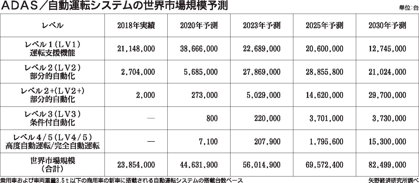 自動運転の〝最大勢力〟は「レベル2」「レベル2+」/矢野経済研が予測/2023年に世界総市場の6割へ