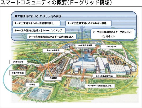 ■工業団地のエネルギーマネジメントシステム「F―グリッド」(発電・蓄電・エネ管理)始動、工場と地域社会の新たな連携、非常時には周辺に電力供給 東日本大震災から2年が過ぎた4月。宮城県大衡村の第二仙台北部工業団地で、トヨタ自動車東日本を中心と...