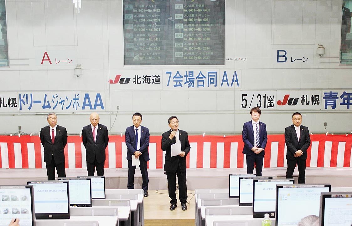 北海道中古自動車販売商工組合(JU北海道、問谷功三理事長)は17日、JU北海道7会場合同AAを開いた=写真。7会場合計の出品台数は各支部が目標をクリアし、前年比5・0%増の2021台を集めた。 道内JU全会場がワンタイトルで行う中古車オー...