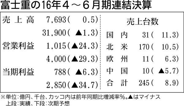 富士重工業は3日、2017年3月期通期業績見通しを修正した。売上高は北米や国内の販売好調を受けて同200億円増の3兆1900億円へ上方修正した。一方、営業利益はタカタ製エアバッグのリコール関連費用などにより、当初計画から200億円減の40...