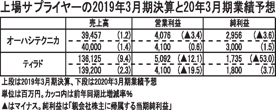 上場サプライヤーの2019年3月期決算と20年3月期業績予想