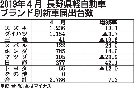 【長野】長野県4月の新車登録台数は、前年同月比3・4%増の4572台となり、3カ月ぶりに増加した。 車種別台数は、乗用車が同4・9%増の3968台となり、内訳は普通乗用車が同14・6%増の2064台、小型乗用車が同3・9%減の1904台と...