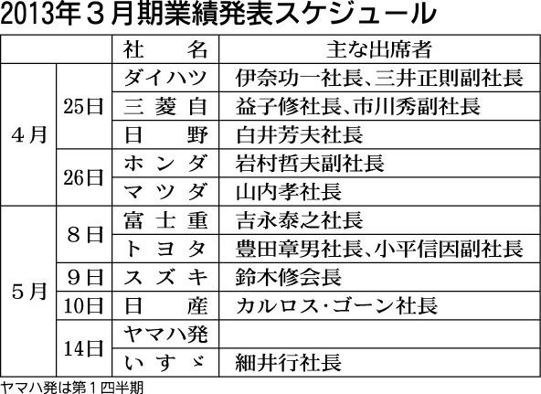 自動車メーカー上場10社の2013年3月期連結決算発表が25日からスタートする。12年3月期は東日本大震災やタイの大洪水などの影響で7社が減収となったが、13年3月期は各社の巻き返しが進んでおり、増収となるメーカーが増えそうだ。営業利益も...