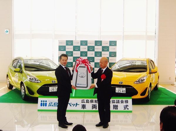 広島トヨペット(古谷英明社長)は3月27日、広島県社会福祉協議会(山本一隆会長)に「アクア」2台を寄贈した。同社の社会貢献活動の一環で、昨年は「プリウスPHV」を贈っており、今回は2回目の取り組み。 広島市中区の展示情報発信施設「クリップ...