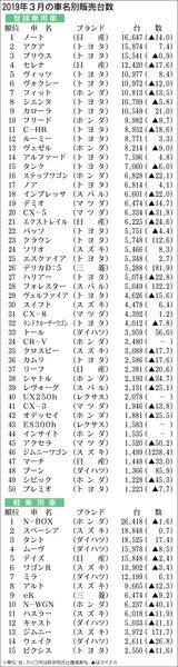 【2019年3月の車名別販売台数】