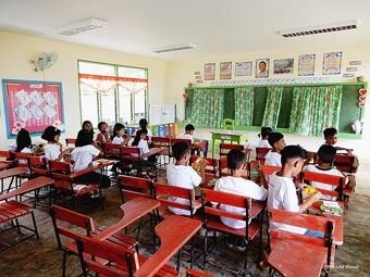 三菱自が支援、比の小学校新校舎が完成