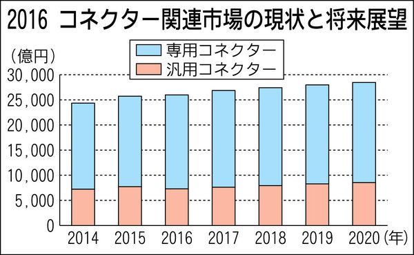 富士キメラ総研(田中一志社長、東京都中央区)は、車載用コネクターの市場規模が2020年に15年度比7・9%増の1兆7591億円に拡大するとの調査結果をまとめた。車両の電装化が進んでおり、ECUやワイヤーハーネスの搭載個数が増えることに伴っ...