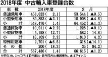 日本自動車輸入組合(JAIA)が10日に発表した2018年度(18年4月~19年3月)の中古輸入車の登録台数は前年度比1・4%増の56万7486台と、4年連続プラスとなった。 車種別では、乗用車が同1・4%増の54万8476台と、4年連続...