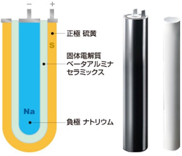NAS(ナトリウム硫黄)電池とは、負極(マイナス極)にナトリウム(Na)、正極(プラス極)に硫黄(S)、両電極を隔てる電解質にファインセラミックスを用いた蓄電池です。通常の鉛電池と異なり、両電極が液体で電解質が固体となっていることが特徴で...