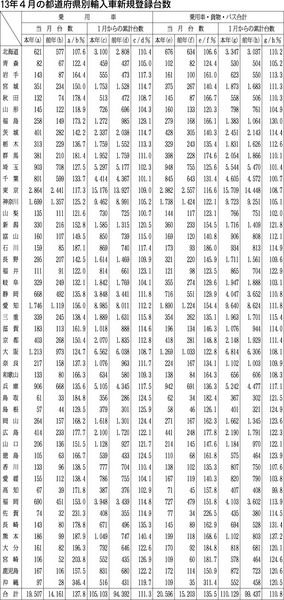 【13年4月の都道府県別輸入車新規登録台数】