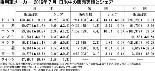 乗用8社7月新車、米で3社が月次新 中国も好調続く