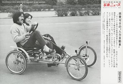 今でこそ遊園地や大型公園に行けば、多種多様な自転車が楽しめる。しかし昭和40年代は、このような自転車ですらニュースになるほど珍しかったらしい。並んで2人が乗れ、最高時速は15キロメートルほど(もちろん、体力によるだろうが)。ライトや反射板...