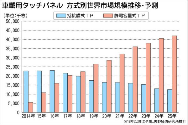 矢野経済研究所(水越孝社長、東京都中野区)は、2016年における車載用タッチパネルの世界市場が15年比15・9%増の3898万パネルに拡大するとの調査結果を発表した。主要用途のカーナビゲーションに加え、車載ディスプレーオーディオや後部座席...