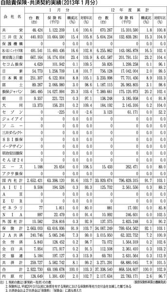 【自賠責保険・共済契約実績(2013年1月分)】