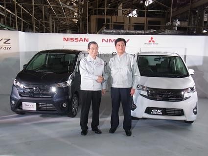 日産自動車と三菱自動車は20日、両社の新型軽自動車、日産「DAYZ(デイズ)」、三菱「eKワゴン」の量産を三菱自の水島製作所(岡山県倉敷市)で開始した。両モデルは日産と三菱自の合弁会社であるNMKV(遠藤淳一社長、東京都港区)が企画、開発...