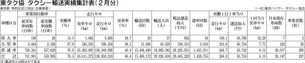 【東タク協 タクシー輸送実績表(2月分)】