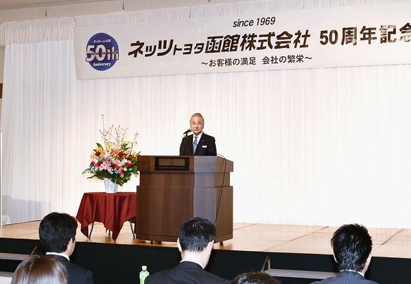 【函館】ネッツトヨタ函館(船橋賢一社長)は15日、市内のホテルで「50周年記念式典」を社員と来賓など181人が出席して盛大に開催した。新設のキャラクター「ねっぺんくん」も披露。7月には顧客対象に大規模な謝恩イベントを予定。「すべてはお客様...