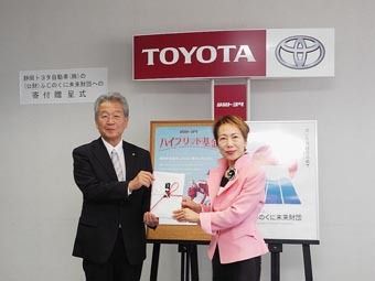 【静岡】静岡トヨタ(川嶋秀樹社長)はハイブリッド車(HV)23車種と燃料電池自動車「ミライ」の販売台数に応じて基金を積み立てる「静岡トヨタハイブリッド基金」から275万500円を、ふじのくに未来財団(伊藤育子代表理事)に寄付した。18日、...