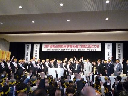 安倍政権の経済政策“アベノミクス”で日本の経済・産業の再生に期待が高まる。こうした中、軽油価格の高止まりで従来以上に厳しい事業経営を強いられているトラック業界が政府・与党にその窮状を訴える決起大会が開催された。全日本トラック協会(星野良三...