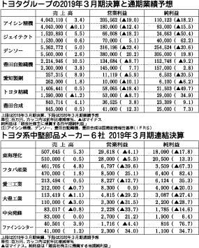 トヨタ自動車系の大手部品7社は26日、2019年3月期連結業績を発表した。全社が増収を確保したものの、償却費や労務費の負担増などにより、豊田合成をのぞく6社が営業減益だった。取引先からの値下げ要請が厳しくなる中、各社はトヨタのCASE戦略...