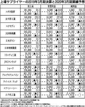 【上場サプライヤーの2019年3月期決算と2020年3月期業績予測】
