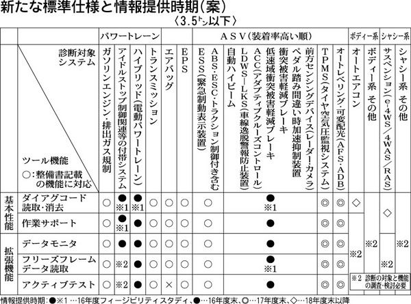 国土交通省は、外部故障診断機(スキャンツール)の新たな標準仕様と実用化時期などを盛り込んだロードマップ(行程表)案をまとめた。予防安全や排ガス処理など点検や整備が難しい車両に整備専業者が対応できるようにする。ただ、機能を増やすと価格が上昇...