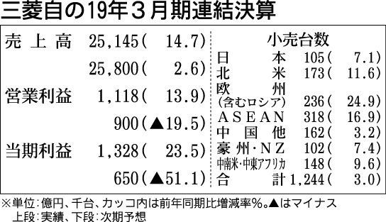 三菱自動車は9日、2020年3月期の連結業績予想で、純利益が前期比51・1%減の650億円となる見通しだと発表した。ユーロや新興国通貨の為替影響や原材料費の悪化、IT領域を中心とした開発費の増加などが利益を押し下げる。販売競争の激化や市場...