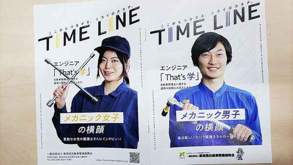 【新潟】クロスレンチをかまえ微笑むメカニック女子と、ソケットラチェットレンチを抱え笑みを浮かべるメカニック男子、~ここからつながる、ミライのカタチ~。TIME LINE エンジニア「That’s学」 自動車整備士に関する疑問や質問にお答え...