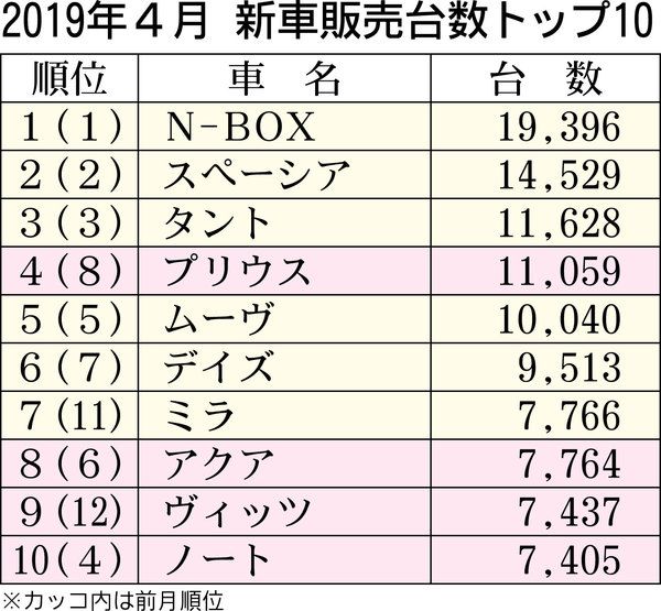 4月新車販売N─BOXが首位 平成最後は軽が上位独占