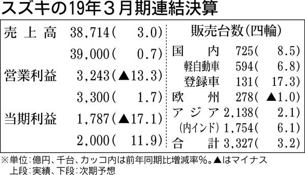 スズキが10日発表した2020年3月期連結業績予想は、営業利益が前年同期比1・7%増で、2期ぶりの増加となる見通し。四輪車の世界販売はインドを中心に新興国で増加するものの日本での販売台数の減少や為替影響、研究開発費が増加するため、ほぼ前年...