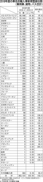 【2018年度の車名別輸入車新規登録台数(乗用車、貨物、バス合計)】