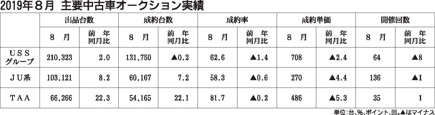 8月主要AA実績、各系列とも好調、出品台数6.7%増