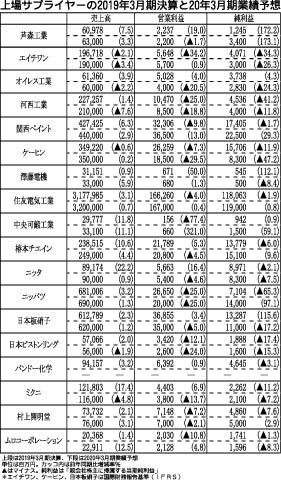 【上場サプライヤーの2019年3月期決算と20年3月期業績予想】