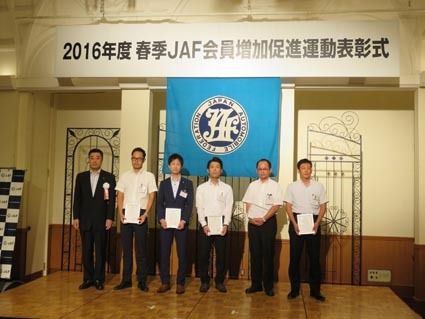【広島】日本自動車連盟(JAF)広島支部(岡本精二支部長)は8日、広島市内のホテルで5~7月に実施した「2016年度春季JAF会員増加促進運動表彰式」を行い、優秀スタッフに感謝状を手渡した。施策拡大優秀賞にはネッツトヨタ中国の山室良太さん...