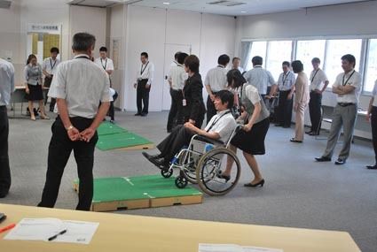 【山形】山形トヨペット(鈴木寿昭社長)はこのほど、山形市の本社で「サービス介助士フォロー研修」を開催した。サービス介助士の資格を取得済みの鈴木社長ら45人が参加し、車いすの扱い方について座学とロールプレーイングを通じ再確認した。 サービス...