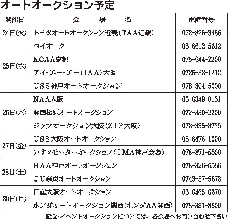 〈オートオークション予定〉近畿圏 2025/12/16~22