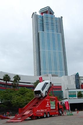 【大阪】西日本三菱(工藤正嗣社長、大阪市淀川区)は6月28、29日の2日間、大阪・南港のATCピロティ広場で4WD(四輪駆動車)の走破性を体験する試乗会を開いた。 最大傾斜角度45度の登坂走行が可能な「三菱4WD登板キット」を活用し、ビッ...