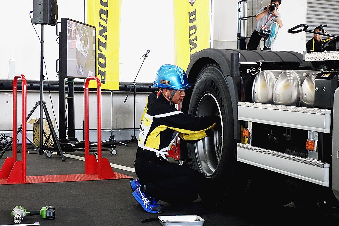 住友ゴム工業はこのほど、「第10回DTS(ダンロップタイヤショップ)全国TBタイヤ作業コンテスト」を開催した=写真。直営店とDTS加盟店のスタッフの作業レベル向上が目的。全国10エリアから選抜された15人が出場し、北陸エリア代表の中田祐弥...