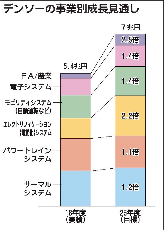 デンソー、25年度に売上高7兆円の過半 電動化・自動運転を柱に