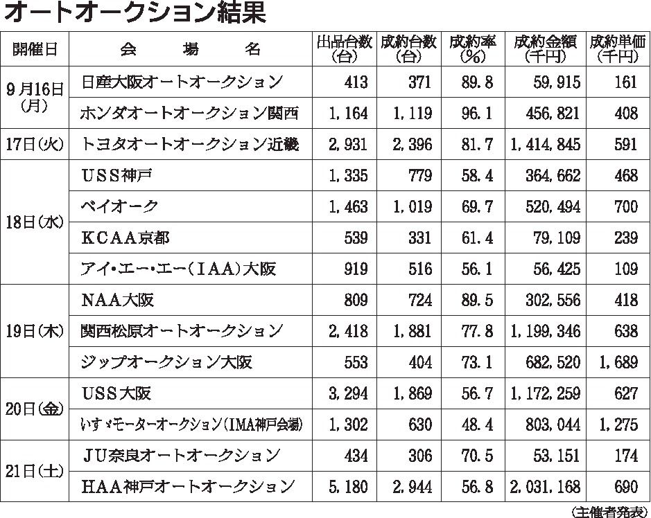 主要AA 2025年10月実績 3事業者がマイナス 新車市場減少が響く
