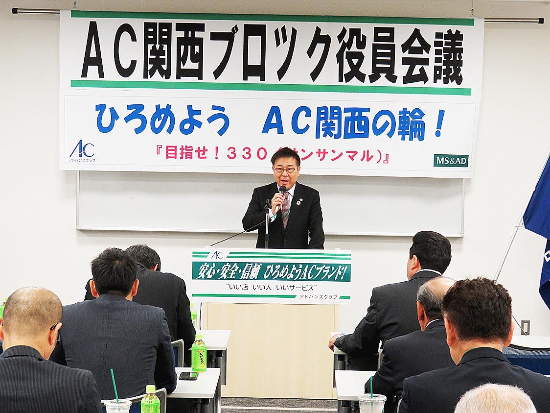 三井住友海上火災保険の自動車代理店で組織するアドバンスクラブ(AC)関西ブロック(黒岡雅一ブロック長)は20日、三井住友海上大阪淀屋橋ビル(大阪市中央区)で「AC関西ブロック役員会議」を開催した=写真。同ブロックの支部長や副支部長、保険・...