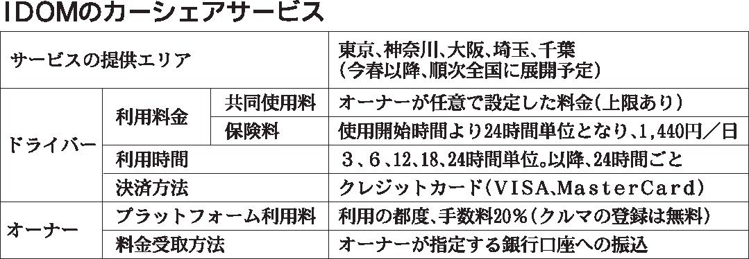 IDOM(羽鳥由宇介社長、東京都千代田区)は16日、個人間カーシェアリングサービス「GO2GO(ゴーツーゴー)」のドライバー登録を開始した。登録特典として初回利用時の金額を20%割り引く。4月にオーナーの本登録を開始しており、初夏のサービ...