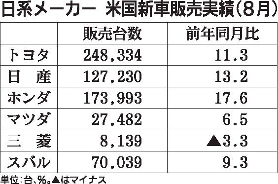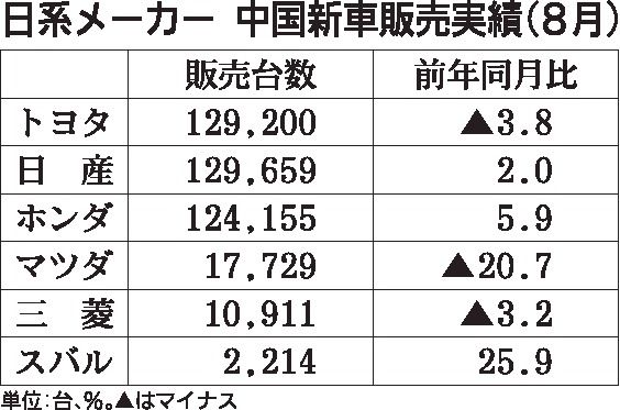 日本メーカーの米国新車販売が回復の兆しを見せ始めた。米国に進出する乗用車メーカー6社の8月の新車販売実績は三菱自動車を除く5社がプラスとなった。マイナス基調が続いていた日産自動車も2桁増、マツダも14カ月ぶりにプラスに転じた。一方、中国市...