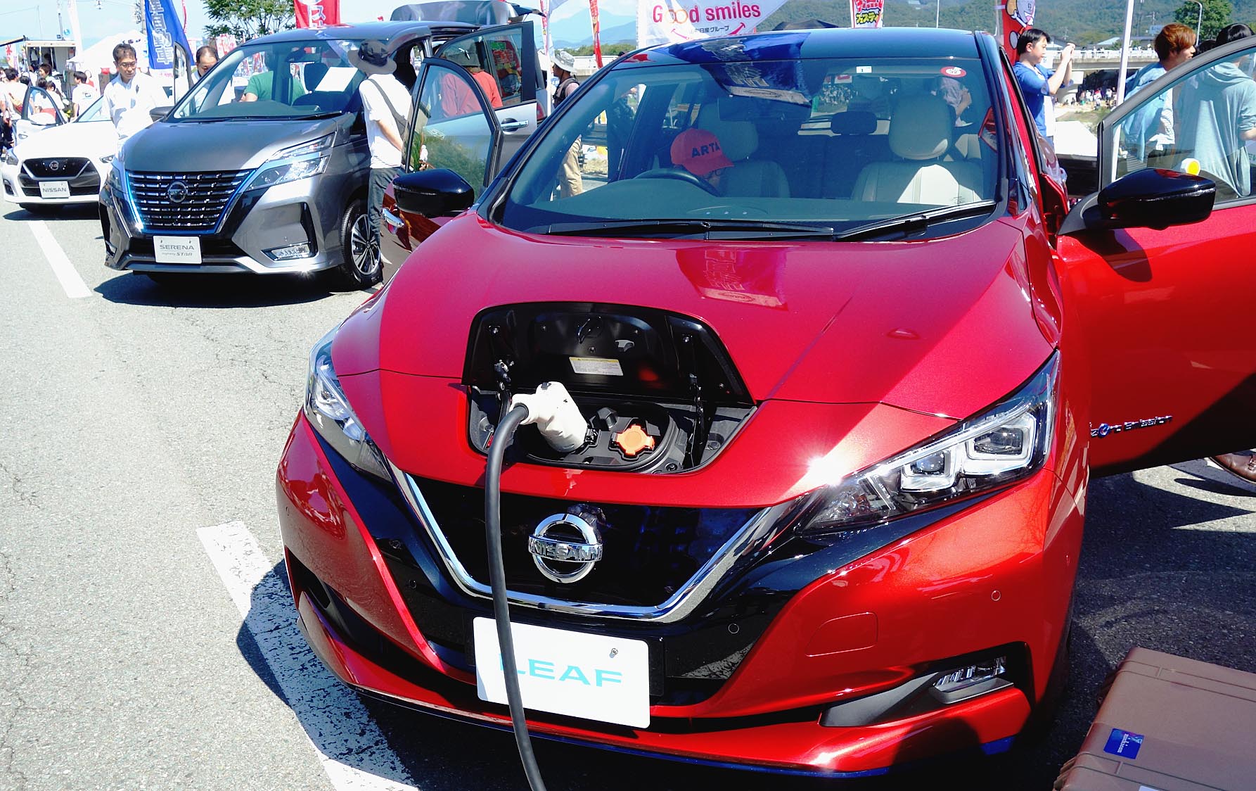 【山形】山形日産(小関眞一社長)を中核会社とする山形日産グループは15日、「第31回日本一の芋煮会フェスティバル」で車両展示を行った=写真。イベントは山形市の馬見ケ崎川河川敷で開催され、会場内に展示ブースを設けた。「スカイライン」と「リー...