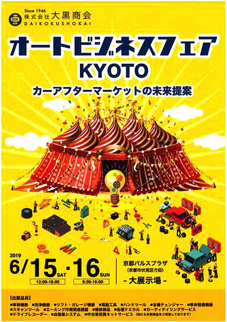 地域部品商の大黒商会(井上雅文社長)は6月15、16日に、京都パルスプラザ(京都市伏見区)で「オートビジネスフェアKYOTO カーアフターマーケットの未来提案」を開催する。取引先に同社の取り扱い商品の全貌を見て、触れてもらい、デモンストレ...
