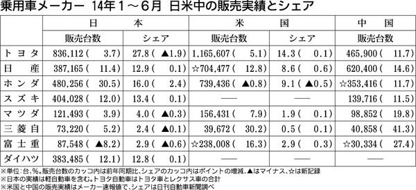 日本の乗用車メーカーの日本、米国、中国における2014年1~6月の販売がいずれの市場でもおおむね好調に推移している。トヨタ自動車、日産自動車、マツダ、三菱自動車が3市場すべてで前年同期の実績を上回った。中国市場ではホンダと富士重工業が過去...