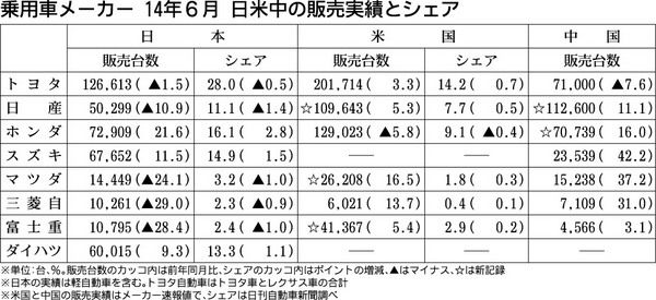 日本の乗用車メーカー、6月の日・米・中販売