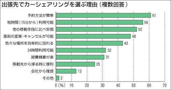 タイムズ24(西川光一社長、東京都千代田区)は、「出張時の移動手段」に関するアンケート結果を発表した。移動手段は「電車」が62%で最多となった。次いで「カーシェアリング」が32%、「タクシー」が31%、「レンタカー」が30%と続いた。カー...