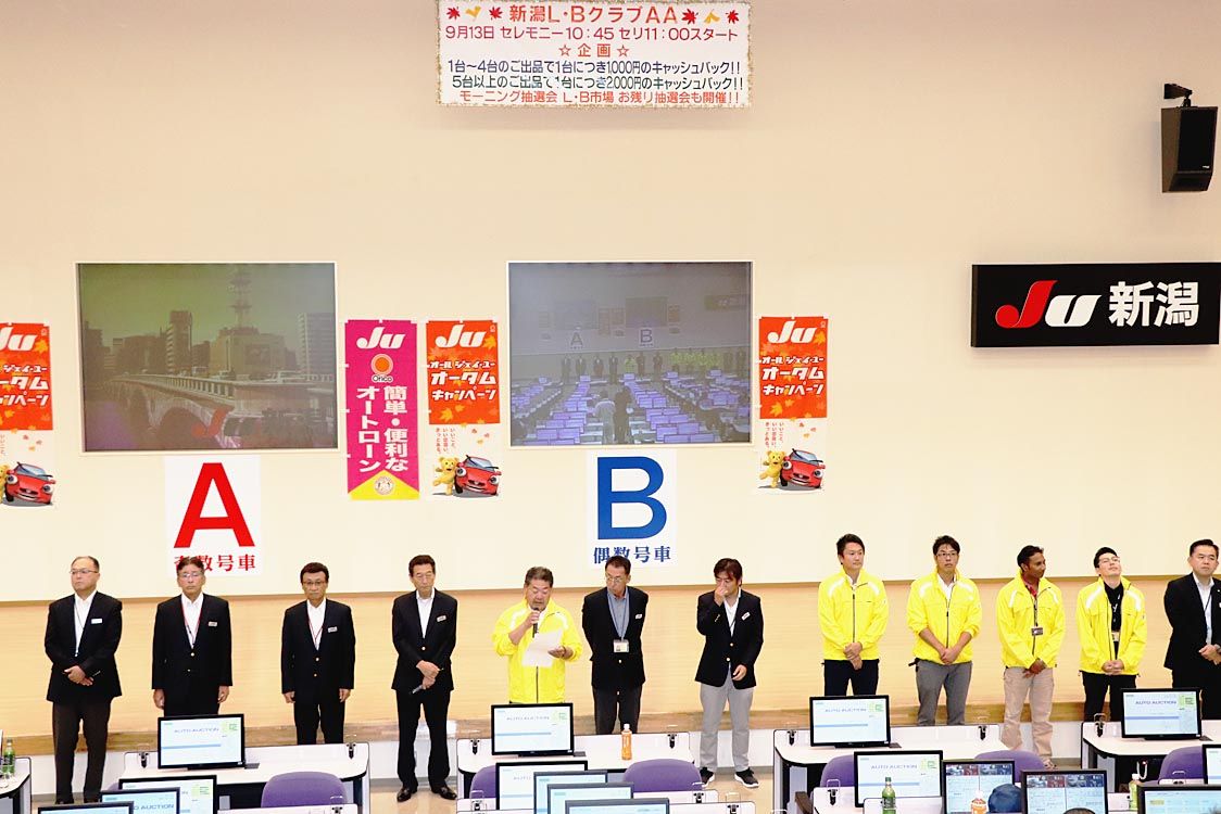 【新潟】JU新潟(海津博理事長)は、「第1753回新潟L・Bクラブオートオークション(AA)」を開催した=写真。当日の総出品台数は約1600台を超え、L・Bクラブ冠AAとしては過去2番目に多い出品台数を記録した。 海津理事長は、オープニン...
