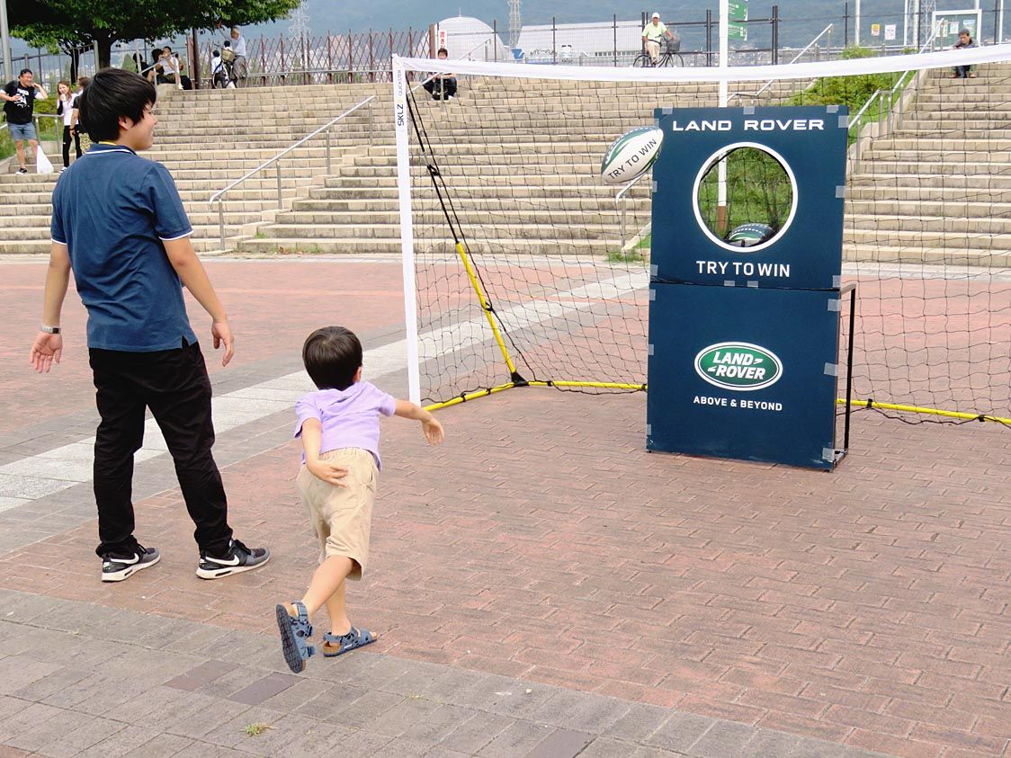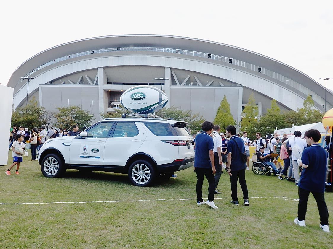 日本代表の躍進で盛り上がるラグビーワールドカップ(W杯)2019日本大会の関西地区の試合会場周辺に、ワールドワイドパートナーのランドローバーの車両が登場した。試合当日に開催されるイベントで展示したもので、巨大なラグビーボールを屋根に載せた...